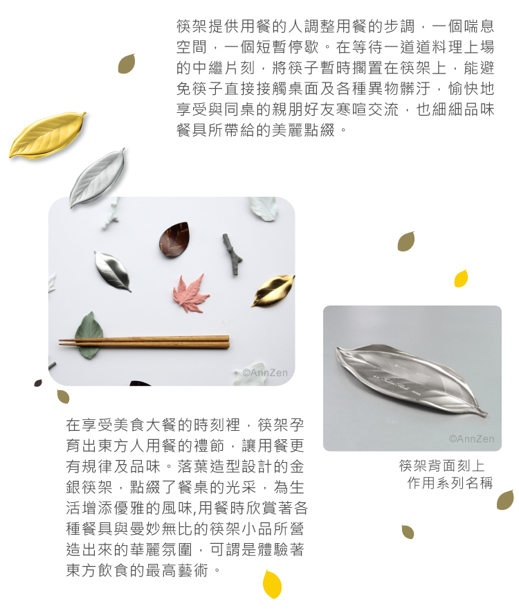 葉片造型筷架讓餐桌頓時繽紛亮麗了起來。