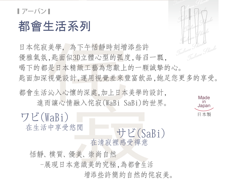 日本近百年老舖,以日本侘寂美學為靈感而設計 侘是在生活中享受悠閒,寂是在清寂裡感受禪意 簡約自然的魅力-為下午恬靜時刻增添些許優雅氣氛 |